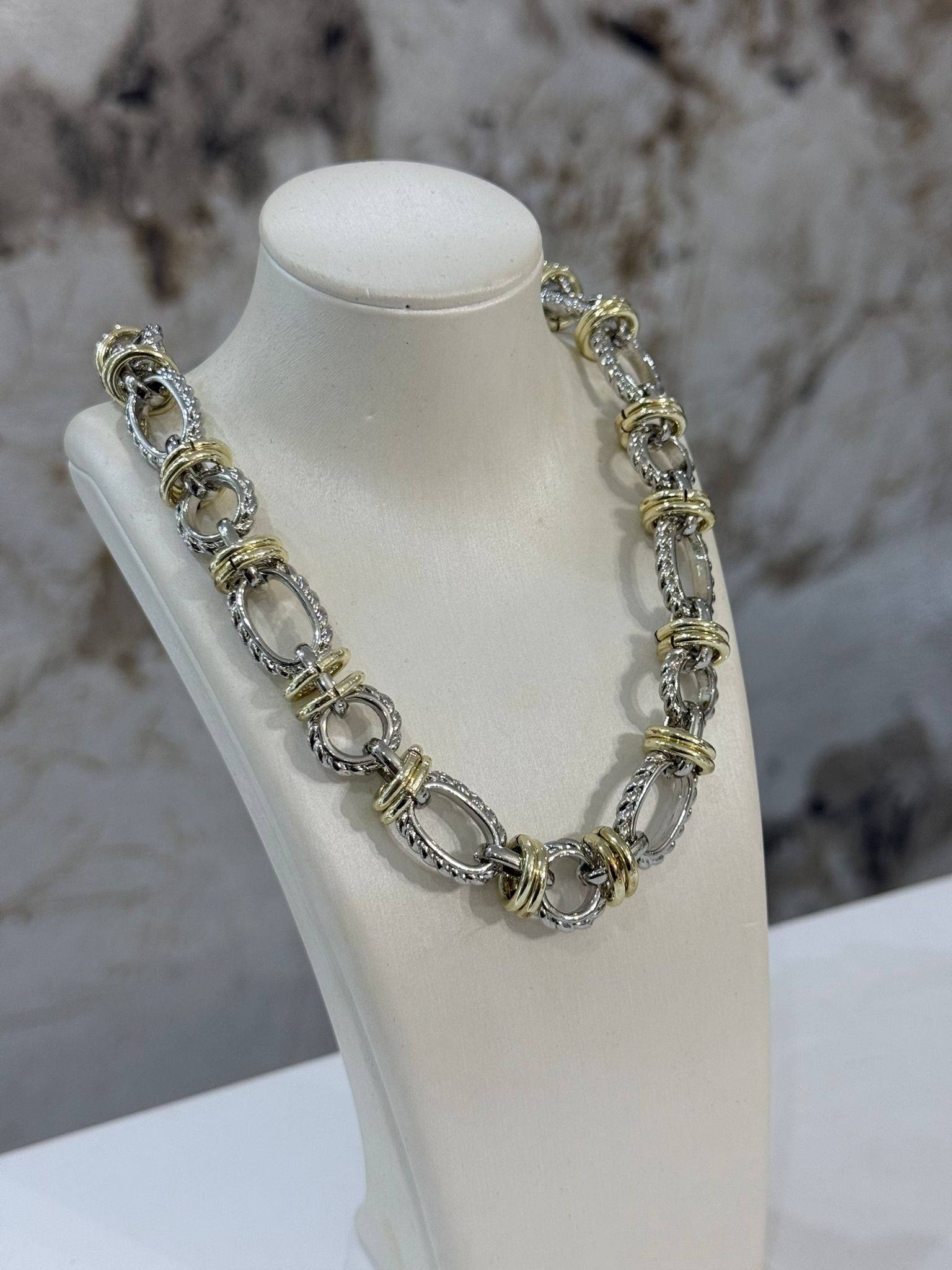 Bold Chunky Necklace (Two Tones) (Gold Plated)