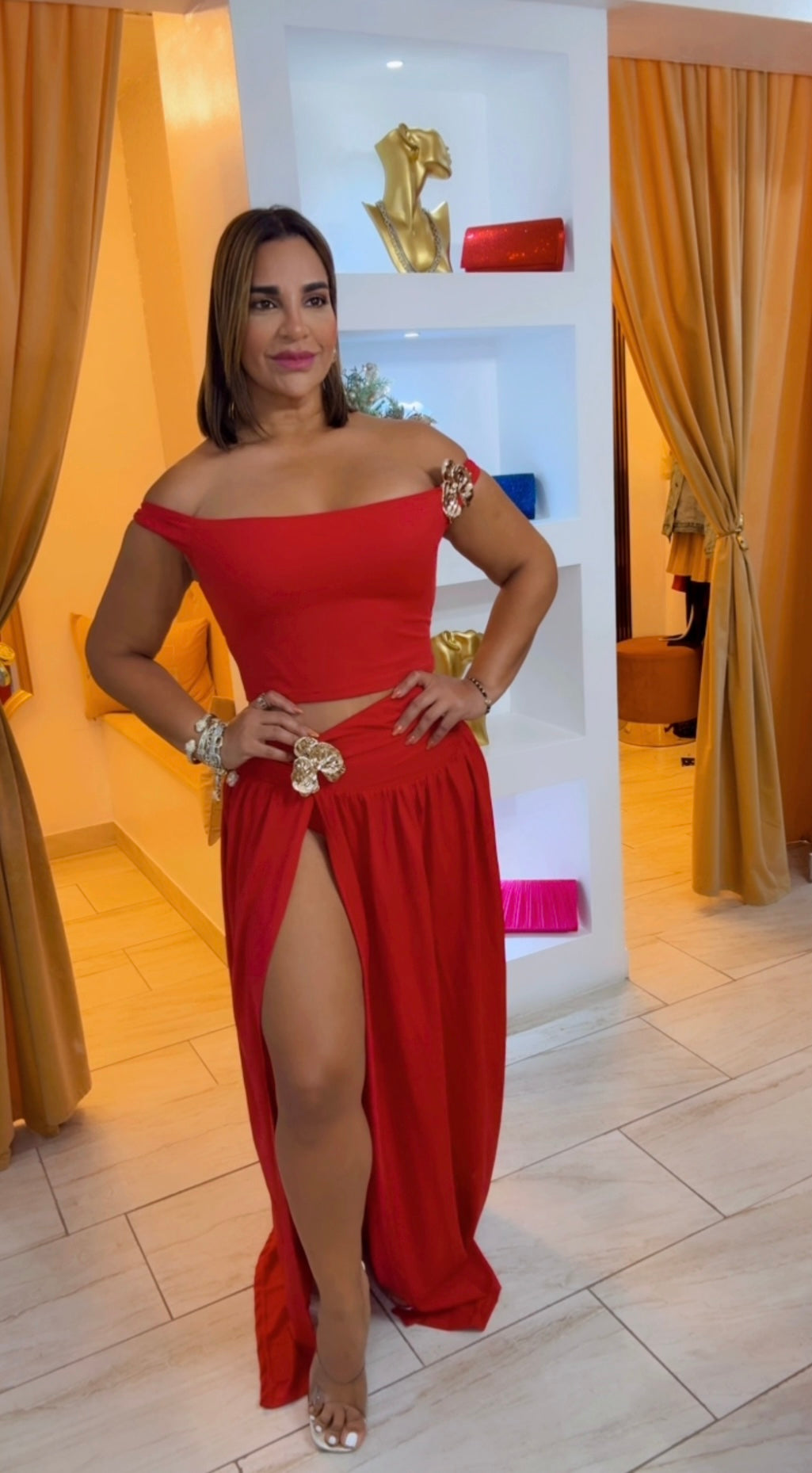 Honolulu Red Skirt Set (Trae pantie integrado) stretch