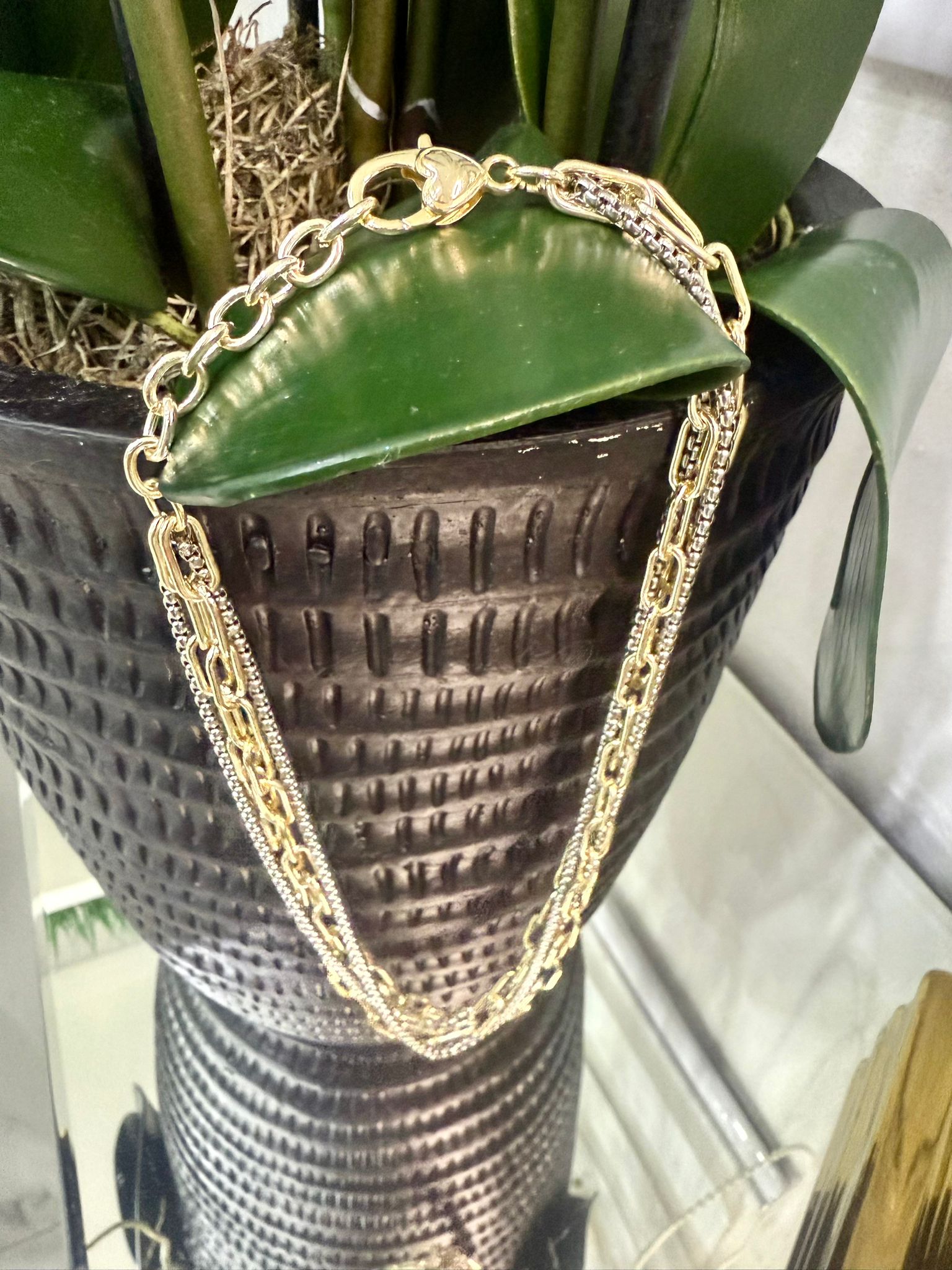 Shine Multi Chain Necklace (Two Tones) (Gold Plated)