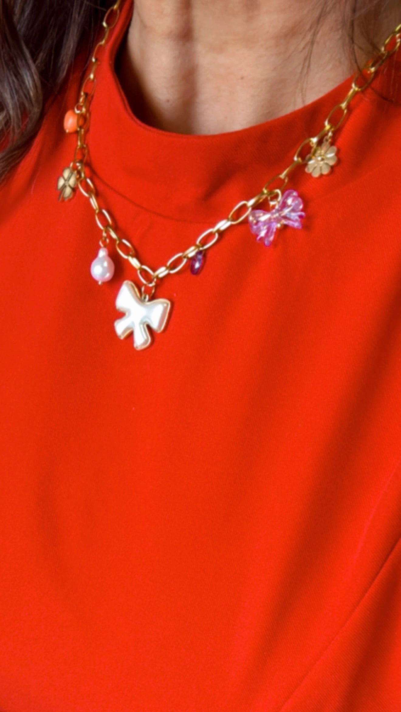 White Bow Gold Necklace ( material oro acero inoxidable) incluye todos los charms.Llegan el viernes