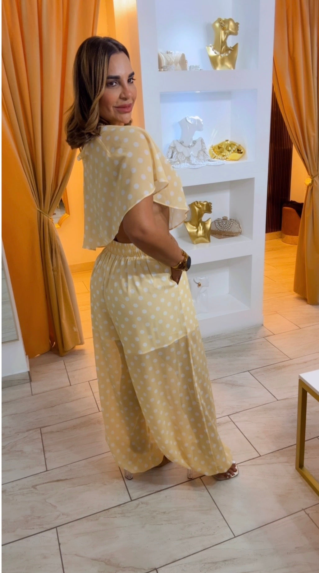 Yellow Polka Dots Set (corre grande) utilicé talla Médium