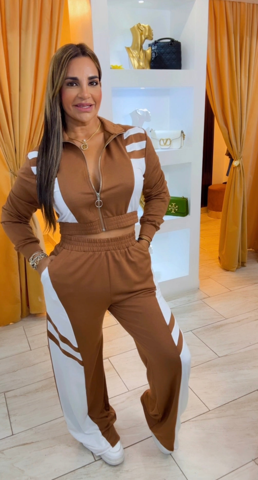 Trendy Travels Brown Set (spandex) utilicé talla Médium